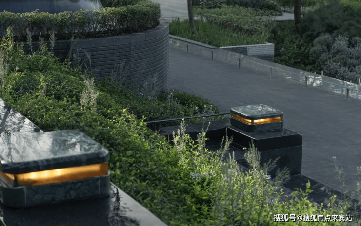 采用小规格安哥拉黑铺设7米宽幅的百米归家车行道,彰显豪宅项目品质,细节用心之处还包含了星光灯指引、弧形定制道牙、4*4mm留缝等体现铺装工艺之美。