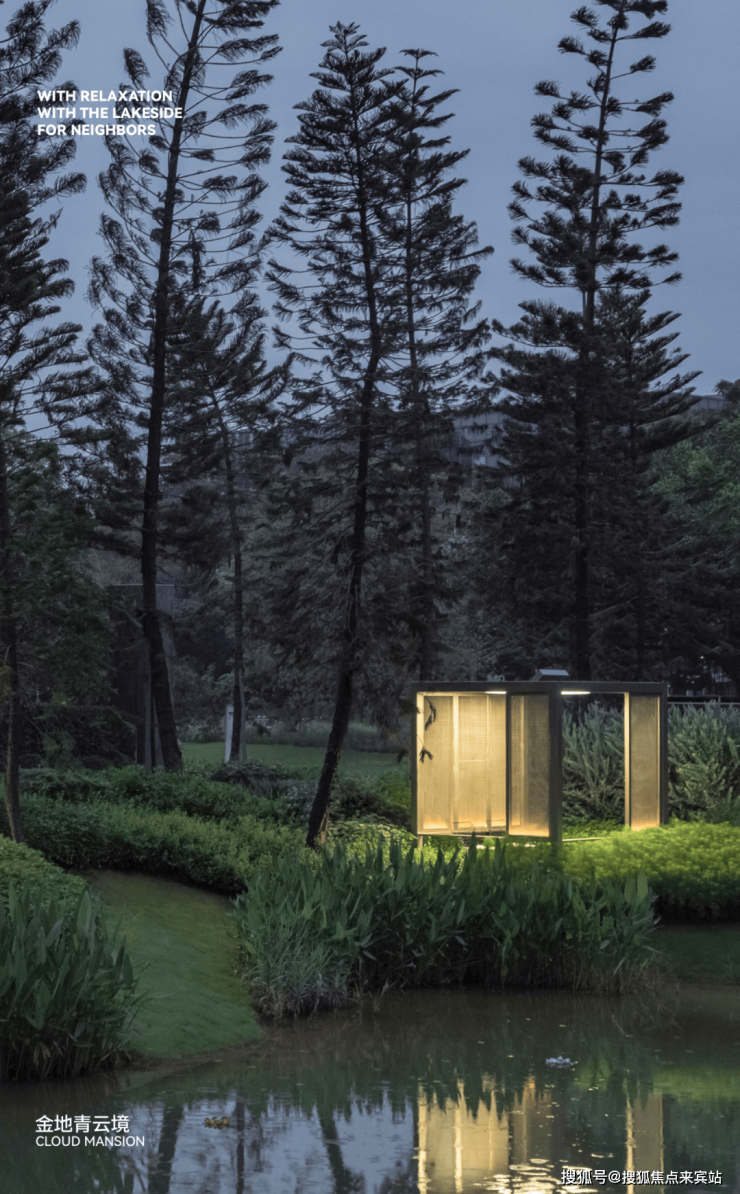 项目的客群亦是周边的高知客群,我们思考如何在这一片不规则的孤岛形态中,强化城市的高级的居住感。项目本身为景观森林所庇护与包裹,我们也试图引湖畔于居住,将森林湖泊的宁静氛围内化为生活的情感价值,打造湖畔边的静奢庄园。