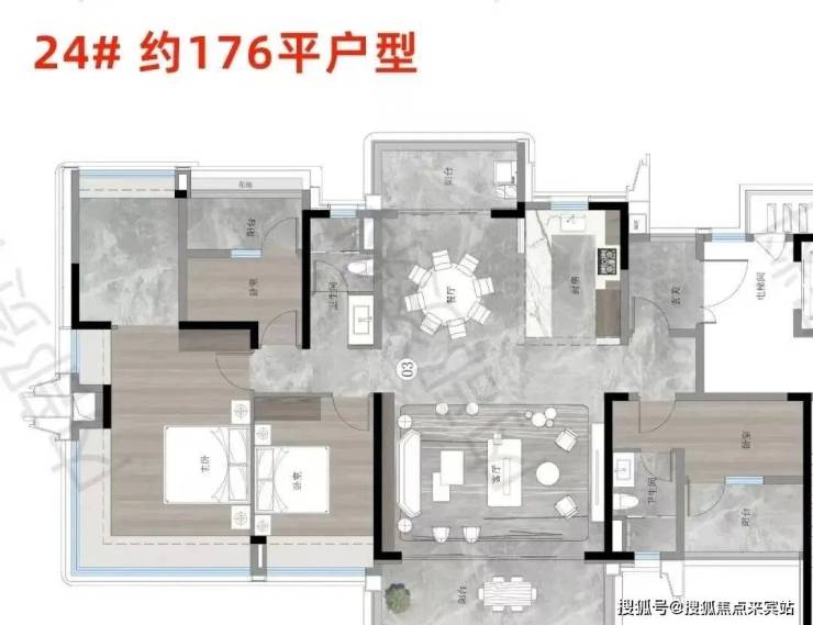首先外部搭载独立专享电梯厅,堪比一个房间大小的电梯厅,既保障了功能性,也兼具仪式感。入户玄关采用转角式设计,不存在一眼看到底,更好地保障了隐私。进入室内,则是集中式打造的公区,将高频使用的公区放置在户型中间,其他功能区环绕布局,塑造出流畅的洄游动线,同时还不存在浪费空间。LDKB一体化大方厅,让人心动无比的超大面积,不但气场铺垫到位,还是极强社交属性的空间,给每位家人足够自由度。南北双阳台设计,居家休闲两不误,晾晒观景不相扰。卧室系统上,按照豪宅标准进行了主次卧分区体系,家庭成员间互不打扰,进一步保障隐私。还沿用了多套房化打造思路,最多可形成3个有效的套房空间,不管是多代同堂还是多孩家庭居住都非常合适。其中靠景观阳台一侧的多功能空间,既可以作为书房、收藏室等使用,又可以进行改造,作为主卧的拓展部分。充足的面积和采光,为空间提供了更多可能,你想它是什么,它就是什么,可以根据家庭周期需求进行变幻。