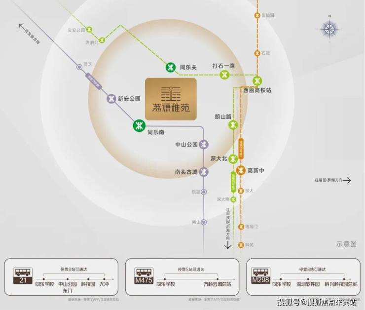 15号线(建设中)同乐关站(直线约1.5km),2站到西丽高铁站,贯穿前海、后海、南山、宝安等重要片区,环经济发展核心区域。