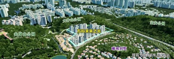 公园配套:万科未来之光所处的尖岗山板块是深圳有名的豪宅板块,周边环境优美,小区紧挨57公顷的尖岗山公园,距离约700米还有72.5公顷的宝安公园。