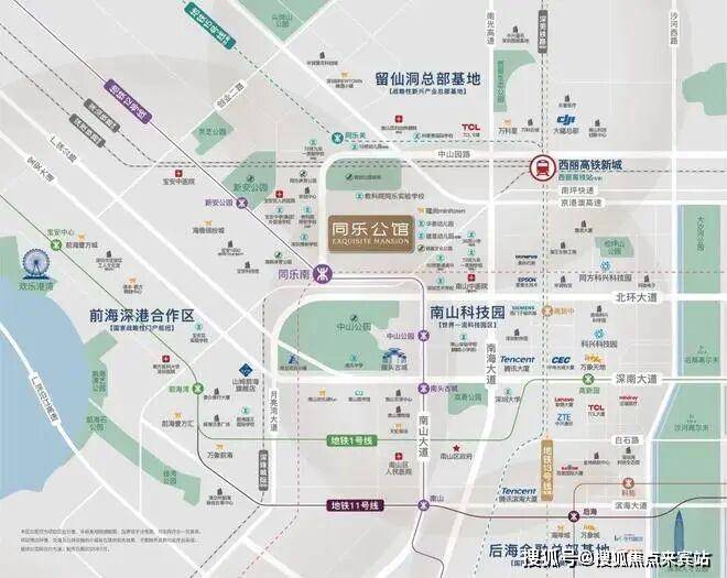 同乐公馆,位于深圳南山区南头街道同乐社区中山园路229号,地处南山区与宝安区交界处,毗邻中山园路与南坪快速交汇处北侧。项目占据"南山科创芯"核心位置,是深圳湾-科技园-西丽科创中轴的关键节点,直线距离仅3公里范围内覆盖科技园、前海自贸区及留仙洞总部基地三大产业核心区。西丽高铁新城(在建中,预计2028年投入使用)的规划进一步提升了区位价值,该枢纽将形成"4高铁+2城际+4地铁"的超级换乘网络,规模超过深圳北站,成为全国最大的轨道交通换乘站之一。
