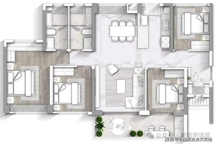 88平做到四房两卫双开间阳台,实用率去到130%,使用面积可以去到110平!!
