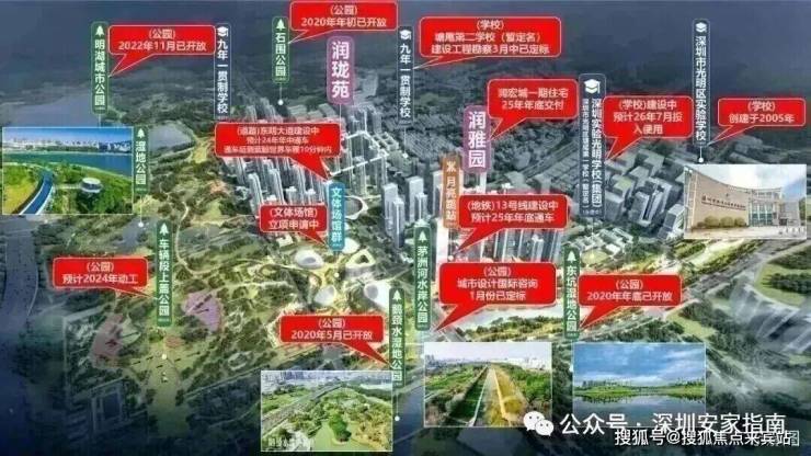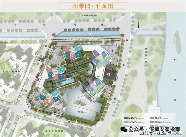 润雅园作为项目首发地块,将规划建设3栋47层超高层住宅和一栋4层18班幼儿园以及部分底商配套,东侧为茅洲河公园绿道。