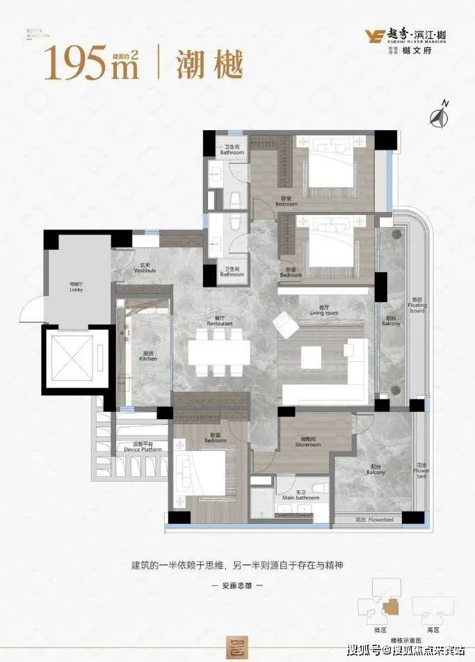 户型设计上,195㎡潮樾户型采用三段式横向揽江生活区,双阳台搭配大飘窗,三个套房保障家人私密性;