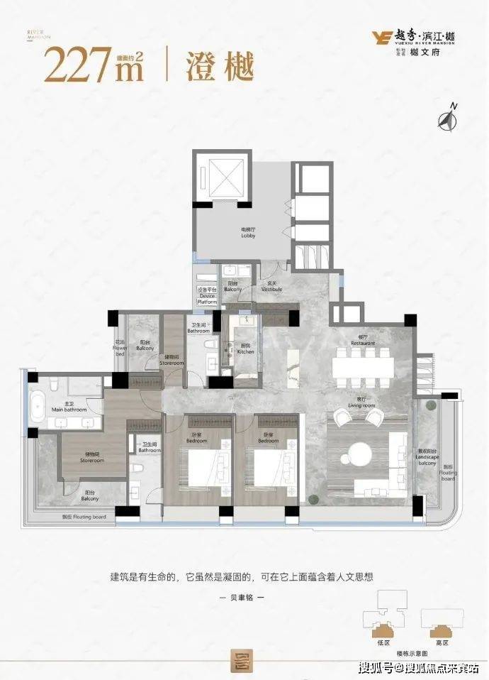 227㎡澄樾户型中西双厨带岛台,入户私属梯厅仪式感满满;