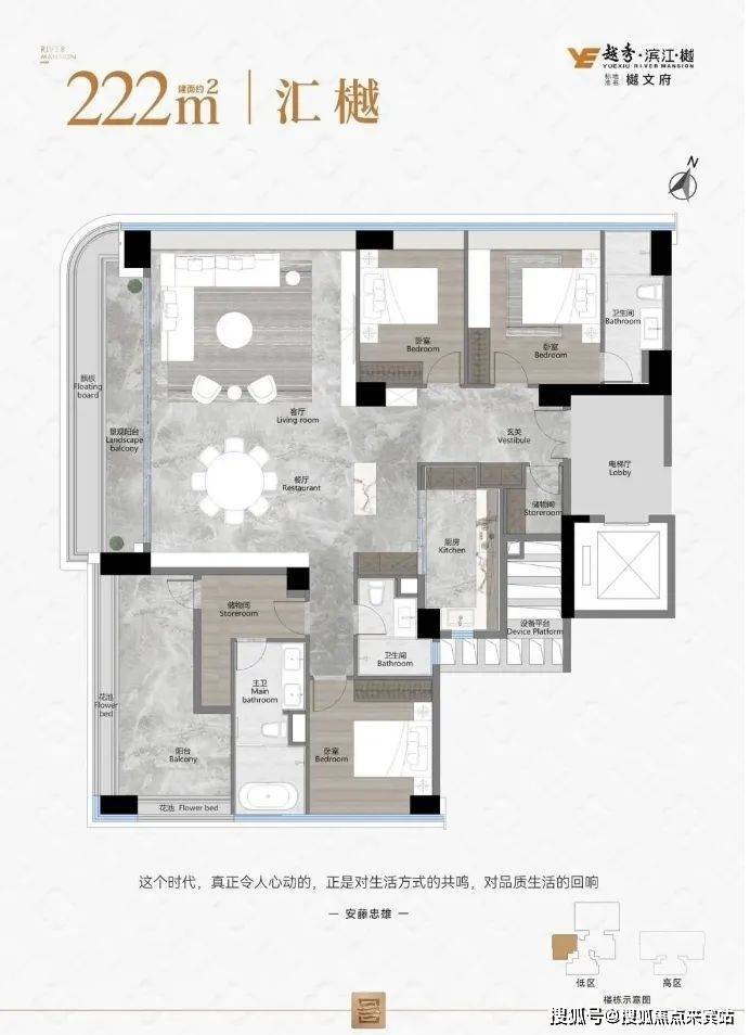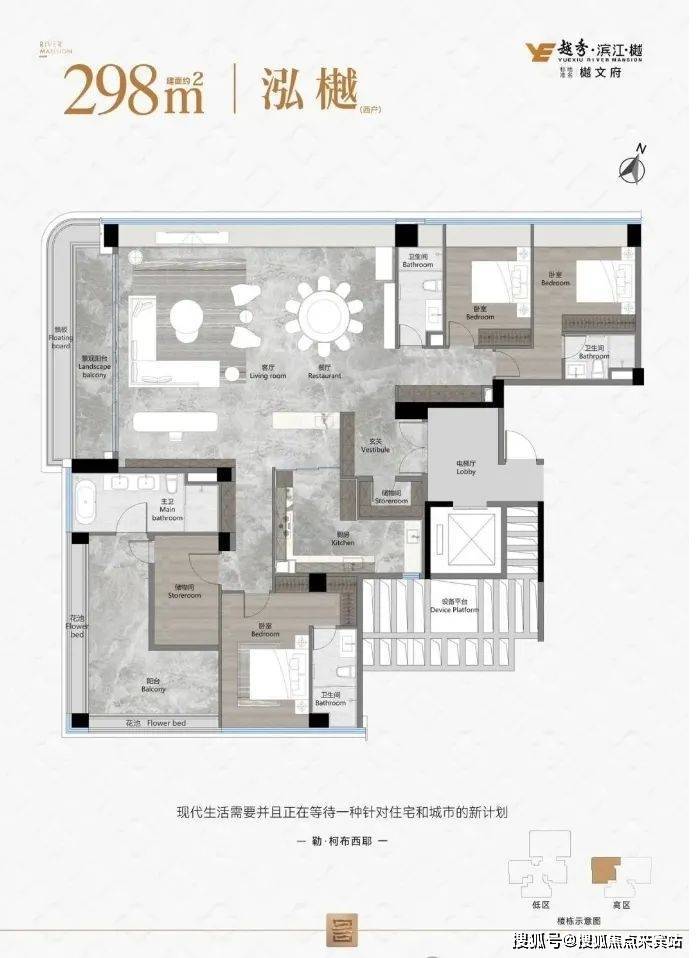 298㎡泓樾户型四套房设计,超大面宽无界厅直面江景。