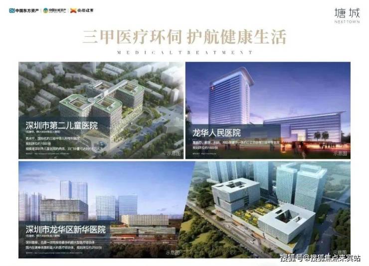 集萃深圳市新华医院(在建中)、龙华人民医院、深圳市第二儿童医院(在建中)、广州医科大附属医院(规划中)等市属公立三甲医院高标准医疗服务体系,护航健康生活