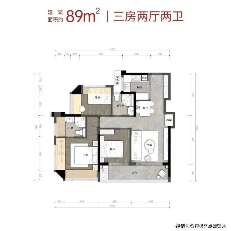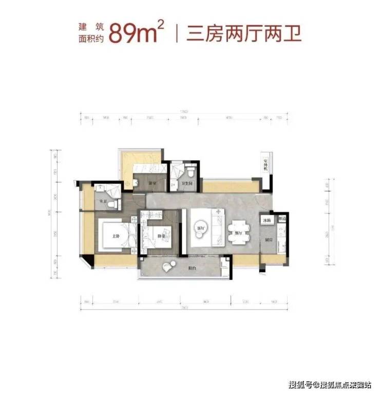 建筑面积约89㎡3房2卫