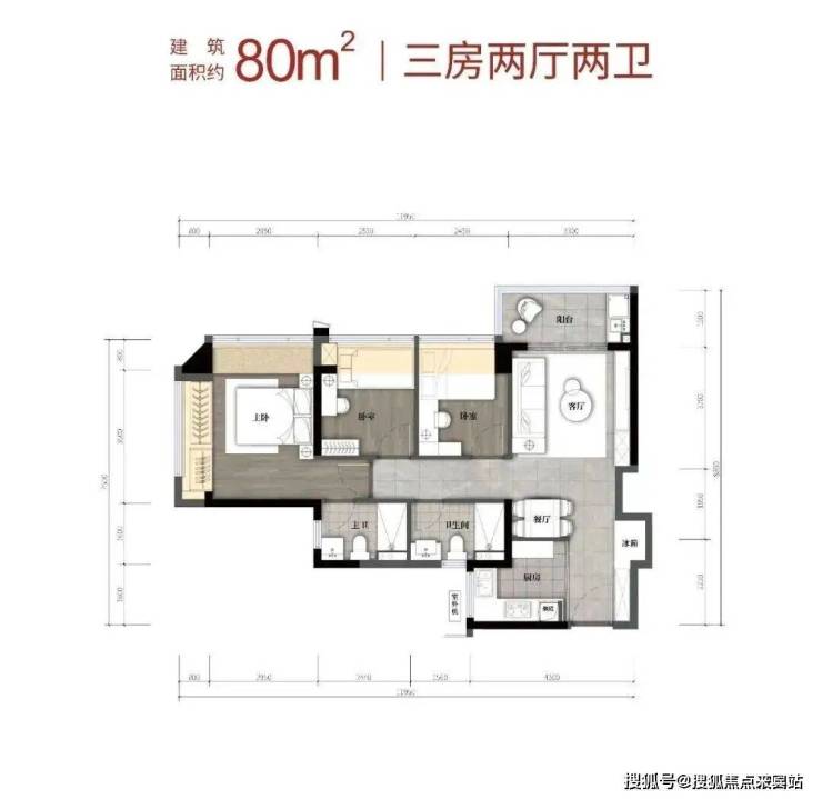 建筑面积约80㎡3房2卫