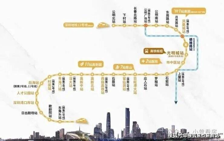 项目距离13号线/6号线支线光明城站1公里;同时也是光明城高铁站,也是广深港高铁线和赣深高铁进入深圳的第一站,周边还邻近观光路,光侨路,深圳外环高速,龙大高速等主要交通要道。