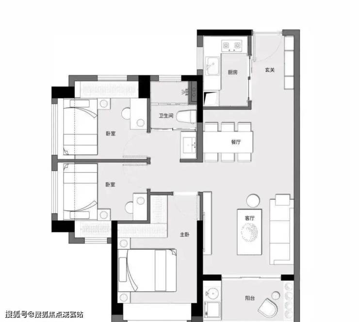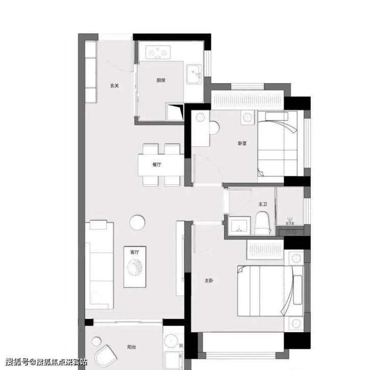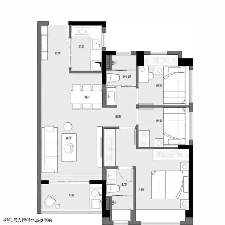 户型方正通透,全南向布局;客餐厅一体化;卧室全飘窗,雅致通透;贴心工卫设计、干湿分离。