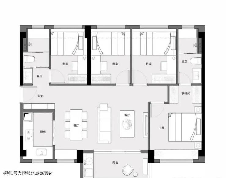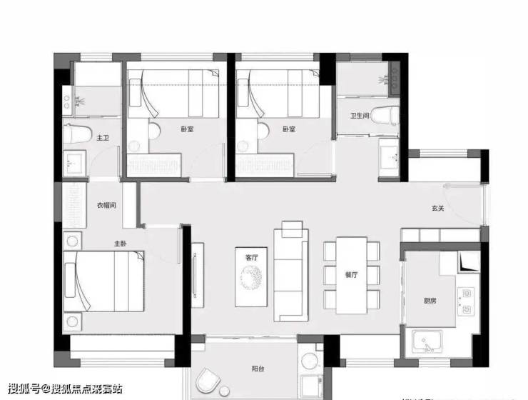 户型方正大气,宽敞横厅设计;U型奢阔厨房;轩敞主卧带独立衣帽间、卫生间;270度观景阳台,至阔南向面宽。