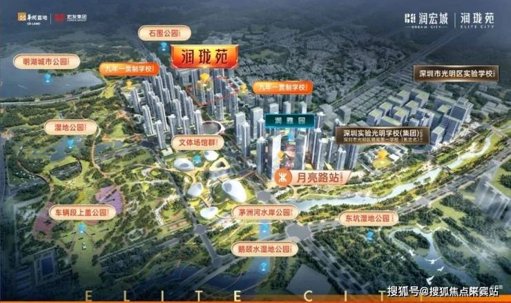 润宏城项目占地面积约2平方公里,建筑面积约382万平方米,是一个真正的“城”级开发项目。项目依托深圳西部通勤快线地铁13号线月亮路站(在建),集轨道交通、优质教育、城市公园、创新产业、品质居住于一体,旨在打造一个宜居、宜业、宜游的现代化城市单元。