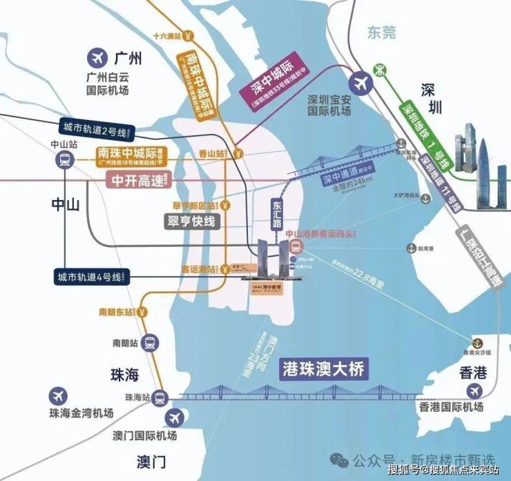 中山港新客运码头(建设中):国家一类口岸,直达深圳福永、蛇口、香港中港城和国际机场等码头,预计2024年6月达通航条件。