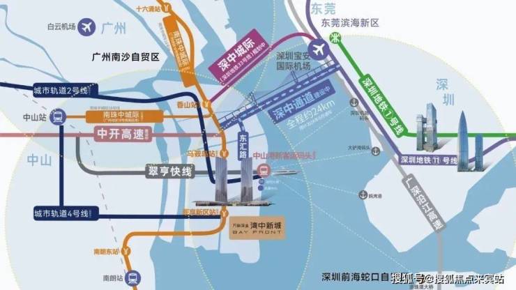 交通方面:从「万科深业湾中新城」出发,走深中通道到深圳前海大概30分钟左右。