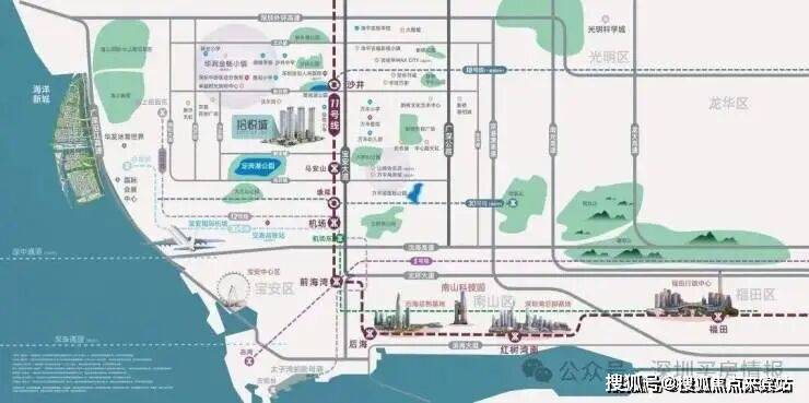 自驾方面,项目呈现“一横四纵”的路网布局,包括深圳外环高速,广深沿江高速、宝安大道、广深公路(107)和京港澳高速等,轻松畅达全城