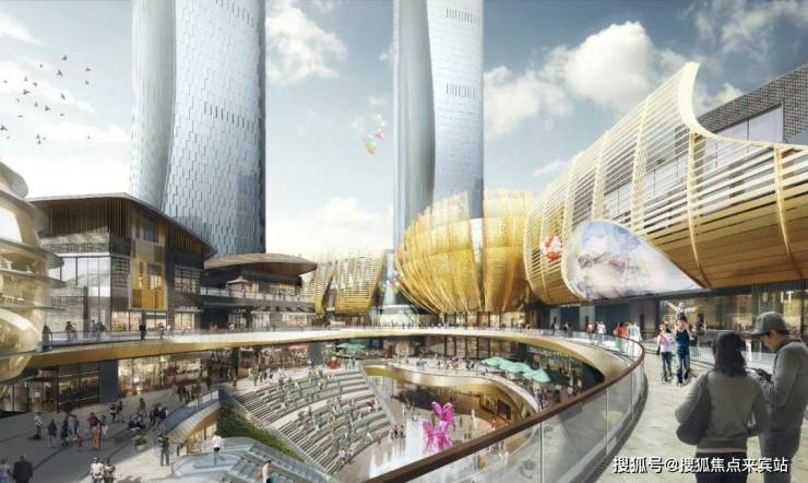 项目塔楼的设计呼应邻近的莲花大桥,其外观仿佛绽放的莲花,形似莲叶的外皮围绕着购物中心和商业街。
