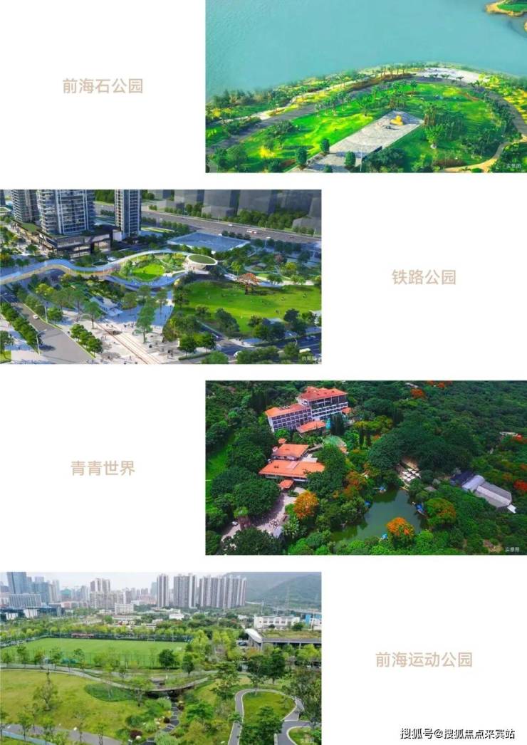 ⛲公园环伺 都会绿肺之芯项目楼下即占地约3.5万㎡的铁路公园(建设中),周边有前海城市水廊道和前湾河双河环绕,背靠大南山、直面前海湾,还有前海石公园、月亮湾公园和丝路长廊城市中央绿地公园环绕,名副其实的住在公园里,下楼即享自然鲜氧好生活。