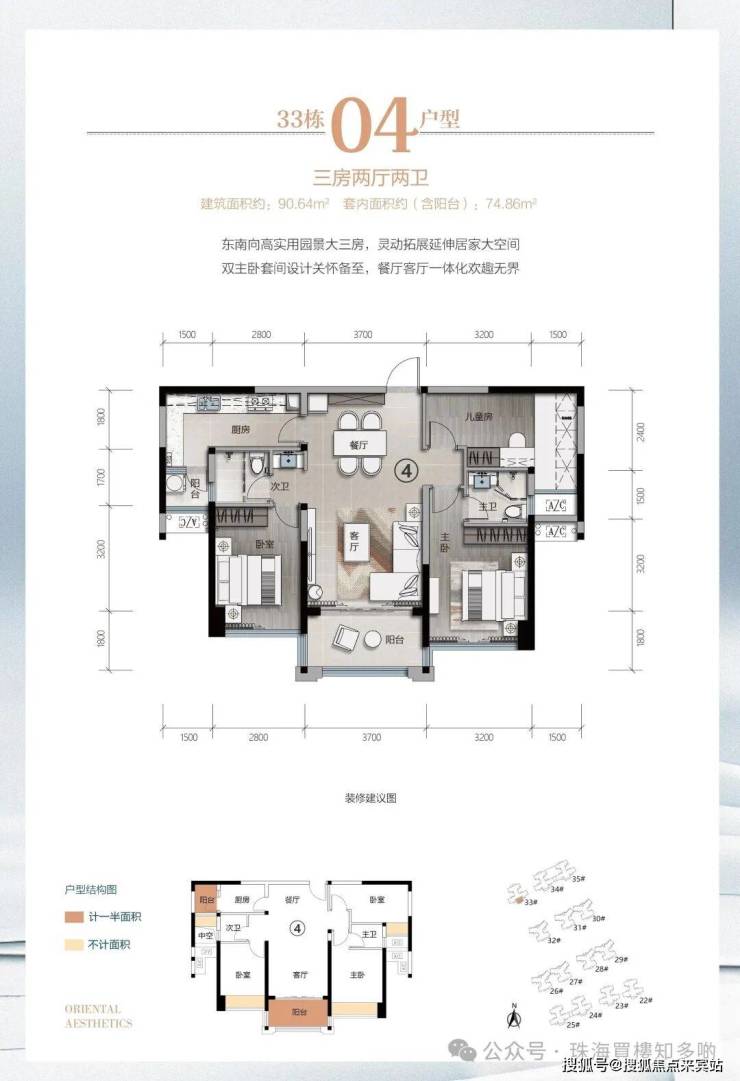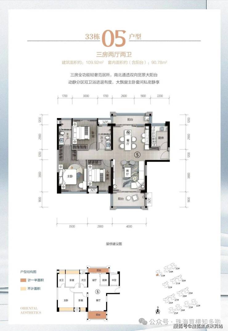 逸骏半岛三期33栋新品,建面约90-122㎡,以巧思匠造,实现空间阔绰灵动变化、户户南向采光充沛的大三房、大四房。