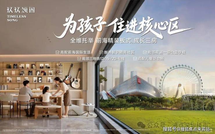 战力2、【高全密配套】高密集度、高规模和规格的文体配套!约2km范围内悦享千亿大湾区会客厅配套:包括“湾区之光”地标摩天轮、欢乐港湾、滨海文化公园、宝安体育场、图书馆、青少年宫、演艺中心等。信息来源:广州PLUS《投资超千亿!粤港澳大湾区会客厅崛起,新机遇来了!》孩子18岁前成长配套集齐!