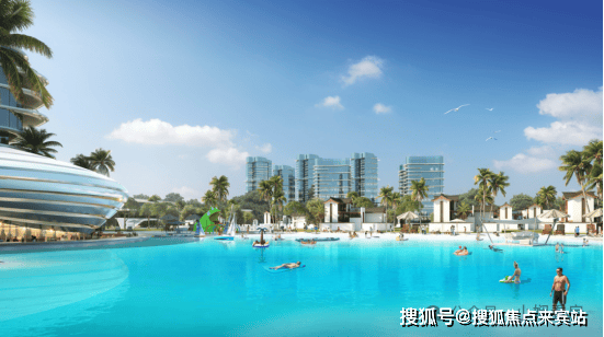 试想一下周末带上家人朋友来这里游玩,有覆盖全年龄的游玩项目,而且安全保障也是杠杠的,即使在台风天也无需害怕,在设计师的周全设计下湖面会保持风平浪静。在这里你可以游泳、划船、冲浪等,还有人工沙滩休闲区,关于夏日的快乐氛围都浓缩在这片水晶湖里。