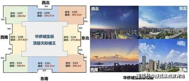 华侨城宝辰总高230米,为宝中最高楼;项目52层,分为中区、高区、超高区,6层起卖,11、39F为避难层,25-26F为空中会所,28F为空中大堂。除了空中大堂项目还有地下入库大堂+首层大堂,一共三重大堂。