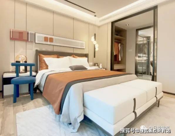再往里走,是精美明亮的阔绰主套间,设计更添一份私密性。私享独立卫浴,还设置有一个小型的独立衣帽间,打造非凡的起居体验!