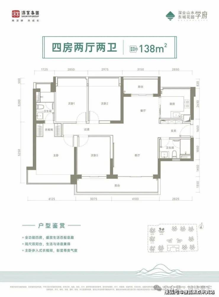 深业山水东城项目主推产品为建面约80-131㎡全南向精装3-4房住宅,提供全功能玄关、大开间阳台。户型可选范围较大可以满足刚需上车,改善换新等多类型家庭需求。