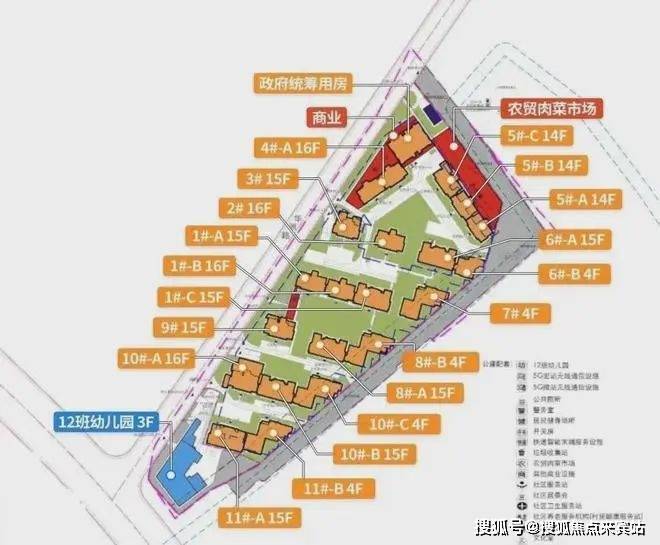 产品主要以小高层和叠墅为主,其中16栋为14-16层的小高层住宅,5栋临河的4层叠墅。由于临近军区的原因,所以朝向不是正南,而是偏西南,小区设计南低北高,东侧的临河位置由于限高15米,做了5栋4层高叠墅,西侧也是小高层15-16层设计。