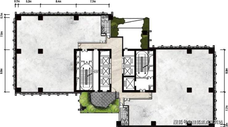 写字楼层高:标准层高(6-32层)4.5米,3-4层9米