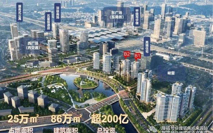 项目介绍:总用地面积约为25.1万㎡,总建面约86万㎡,总投资超200亿