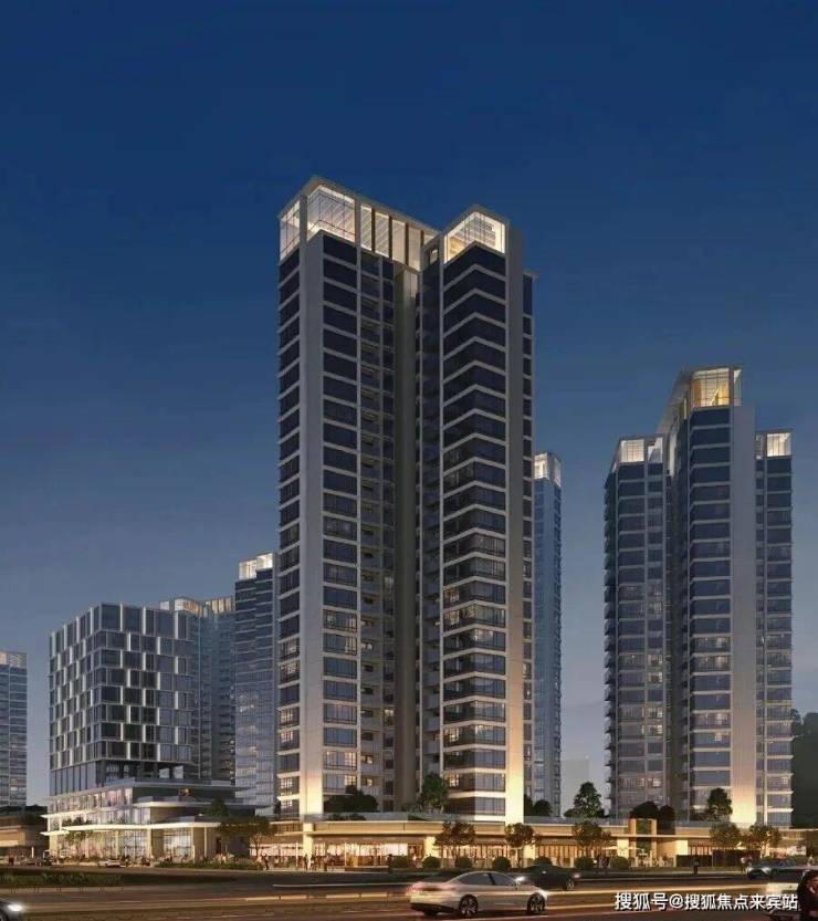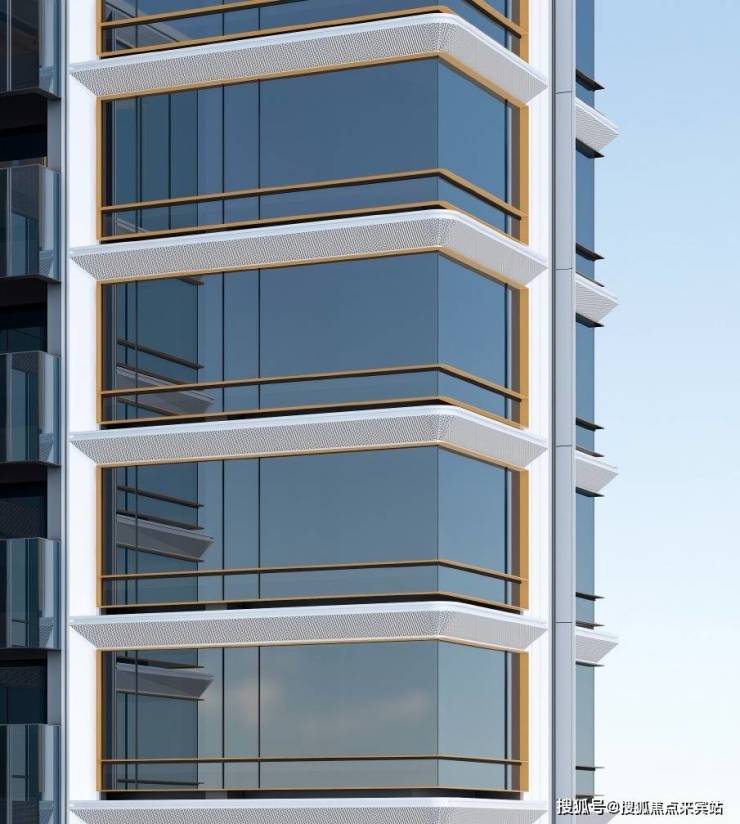 立面设计以“温暖港湾”为灵感,独具识别性。从广深沿江高速、深中通道的视角看,天际线呈前中后三个层次高低起伏,形成流动天际线。