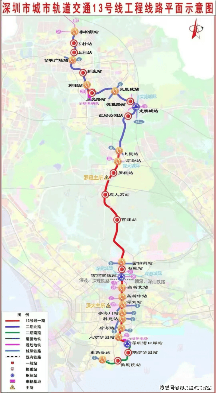 2、等到13号线二期北延段预计26年4月开通后,不用换乘,公明广场站就可以直接乘坐13号直达南山(13站),不用去上屋站换乘了
