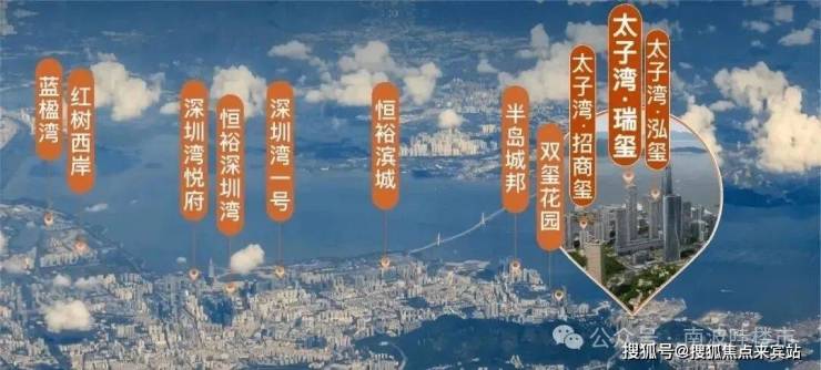 在深圳湾东南走向的15公里黄金海岸线上,瑞玺与招商局广场、海上世界、深圳湾一号、春笋等地标建筑形成深圳西部滨海靓丽城市线。从项目往东北望,海上世界、深圳湾大桥、后海、深超总、福田CBD等都市繁华景观尽收眼底。