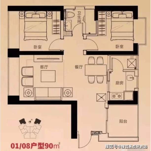 面积:85-89㎡2房1卫,90㎡2+1房1卫,125㎡3房2卫