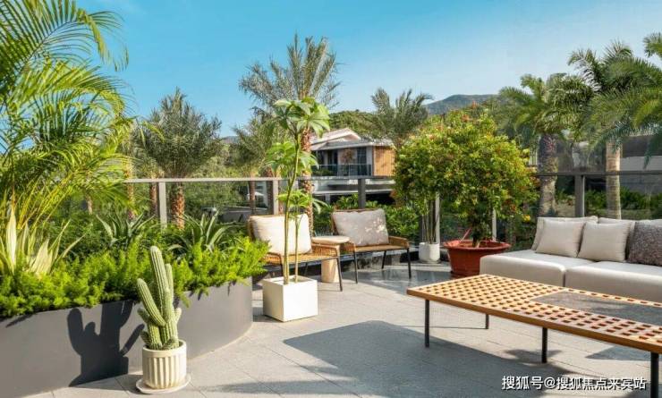 一层的大尺度山景露台,堪比一套大平层的面 积 ,可以种花养草,赋以山石翠松。