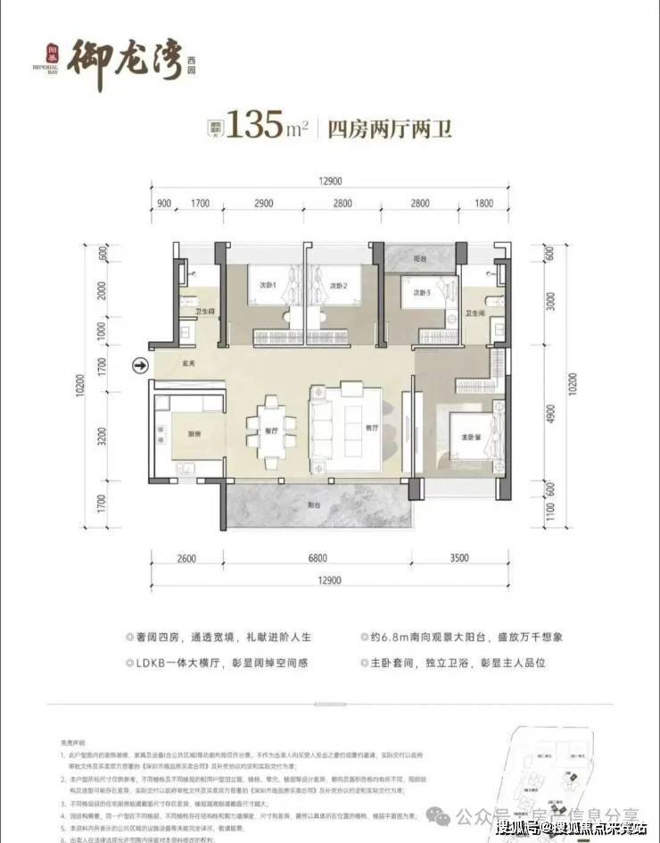 135㎡4房2卫,设计的是横厅南北通透格局,客餐厅开间6.8米,LDKB一体化设计,四开间朝南,U型厨房,公卫三段式分离设计!
