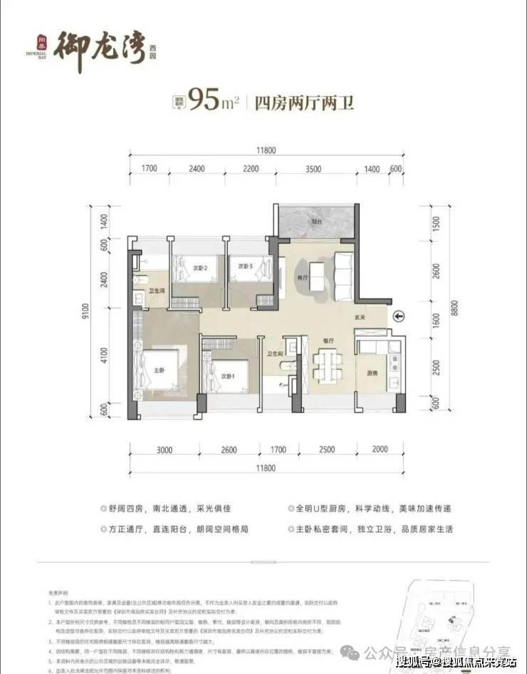 95㎡4房2卫,分布在2栋1单元06户型,设计的是竖厅南北通透格局,客厅开间3.5米,五开间朝南,U型厨房,公卫三段式分离设计!