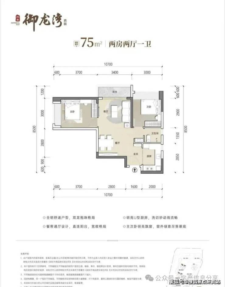 75㎡2房1卫,分布在1栋3/4单元01/08户型,设计的是竖厅稀缺的双龙抱珠格局,客厅开间3.4米,U型厨房,卫生间三段式分离设计!