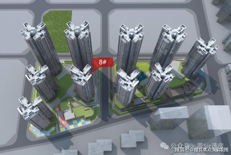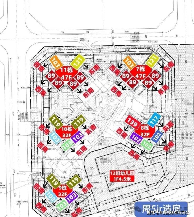 西区:占地2.2万㎡,容积率5.16,涵盖住宅、商业、教育及基础设施。建筑包括:7栋47层3梯6户;12栋46层3梯6户;8栋32层2梯5户;10/11栋32层2梯6户;9栋为幼儿园。