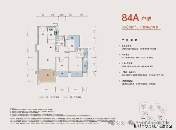 竖厅设计动静分区,约3.5米开间主卧,带独立卫生间,书房L型飘窗,多面采光更通透,U型厨房布局,流线顺畅。