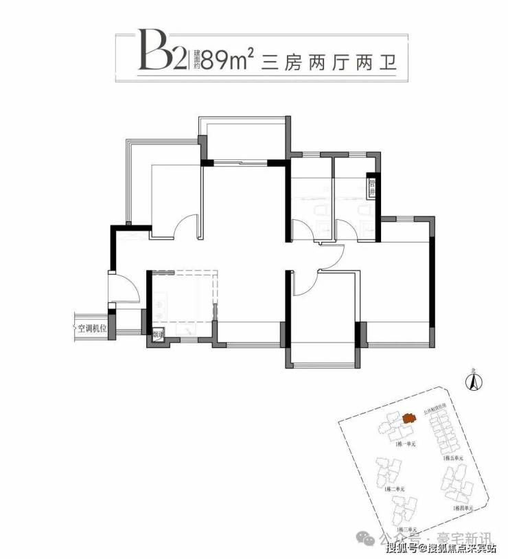 二:建面约89平方B1B2户型三房两厅两卫