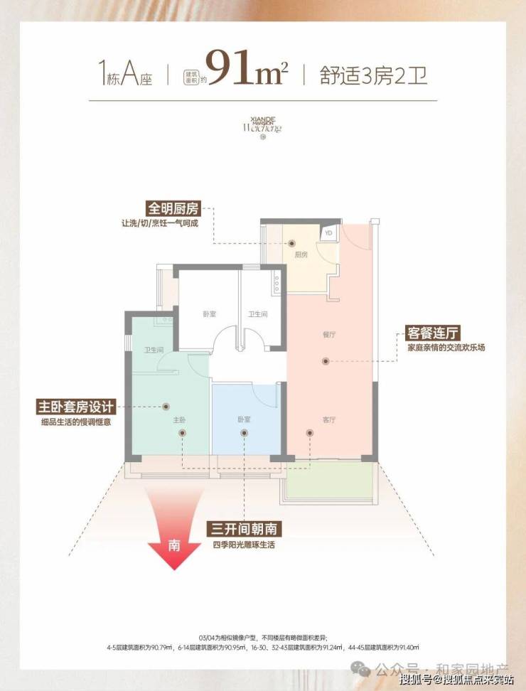 在售产品:建面约91-113㎡3-4房(1栋A座商品房)