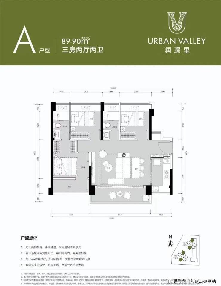 设计的是横厅南北通透格局,客餐厅5.2米开间,三开间朝南,3个卧室分别做到了3.3米/2.8米/2.75米的宽度,L型厨房,公卫三段式分离,阳台主朝东南向。
