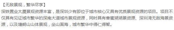 项目地址:福田区深南大道与香蜜湖交汇处,车口庙站D1出口,深铁置业大厦