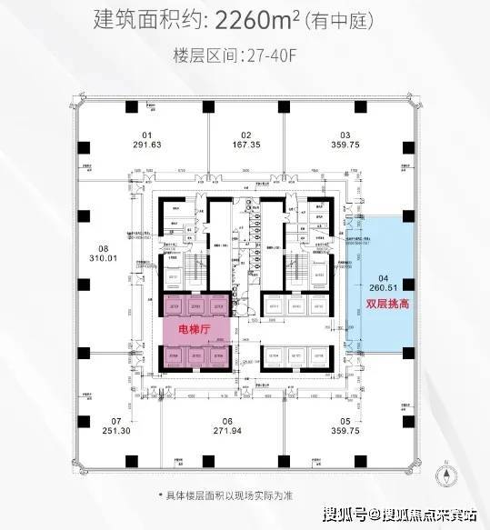 标准层面积:约1303-1836㎡,半层起售