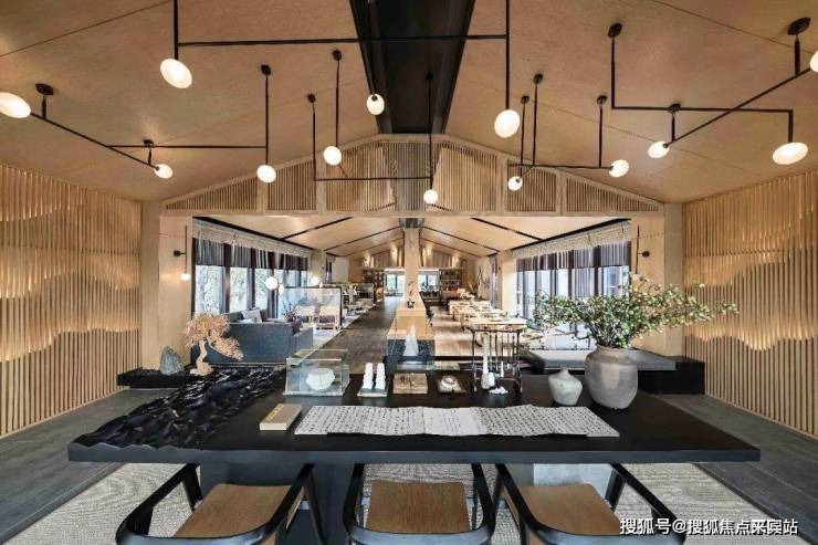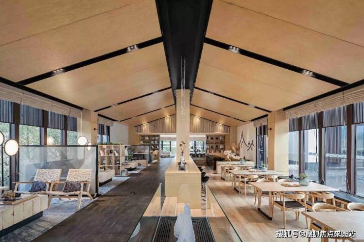 保利•云上西棠,总规划面积约1500亩,延续山水肌理,建成田园综合示范区,并划分为四大组团:湿地接待中心、共享农场示范基地、亲子教育基地、精品民宿及西棠书院。其湿地接待中心与书院由知名的室内设计公司伶居设计担纲。