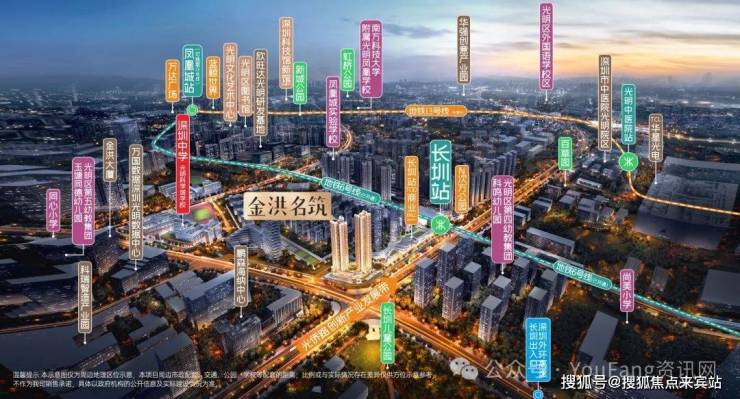 【金洪名筑核心价值点】世界一流科学城,凤凰城核心区,立享精粹醇熟配套光明科学城,中国版“硅谷”、大湾区科技创新“主引擎”。凤凰城片区,将打造成光明中央商务区、总部经济聚集区、超级商圈所在地。金洪名筑占据凤凰城“一环两轴三核”发展格局中的“一轴一核”(光侨路——创新产业发展轴;轨道长圳站节点——光明门户之核芯)。周边云集金洪大厦、招商智慧城、TCL华星光电等十余个科技产业园区,释放磅礴产业红利。