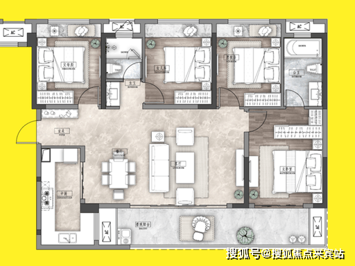 建面约 128㎡ 四房两厅两卫 全周期改善首选